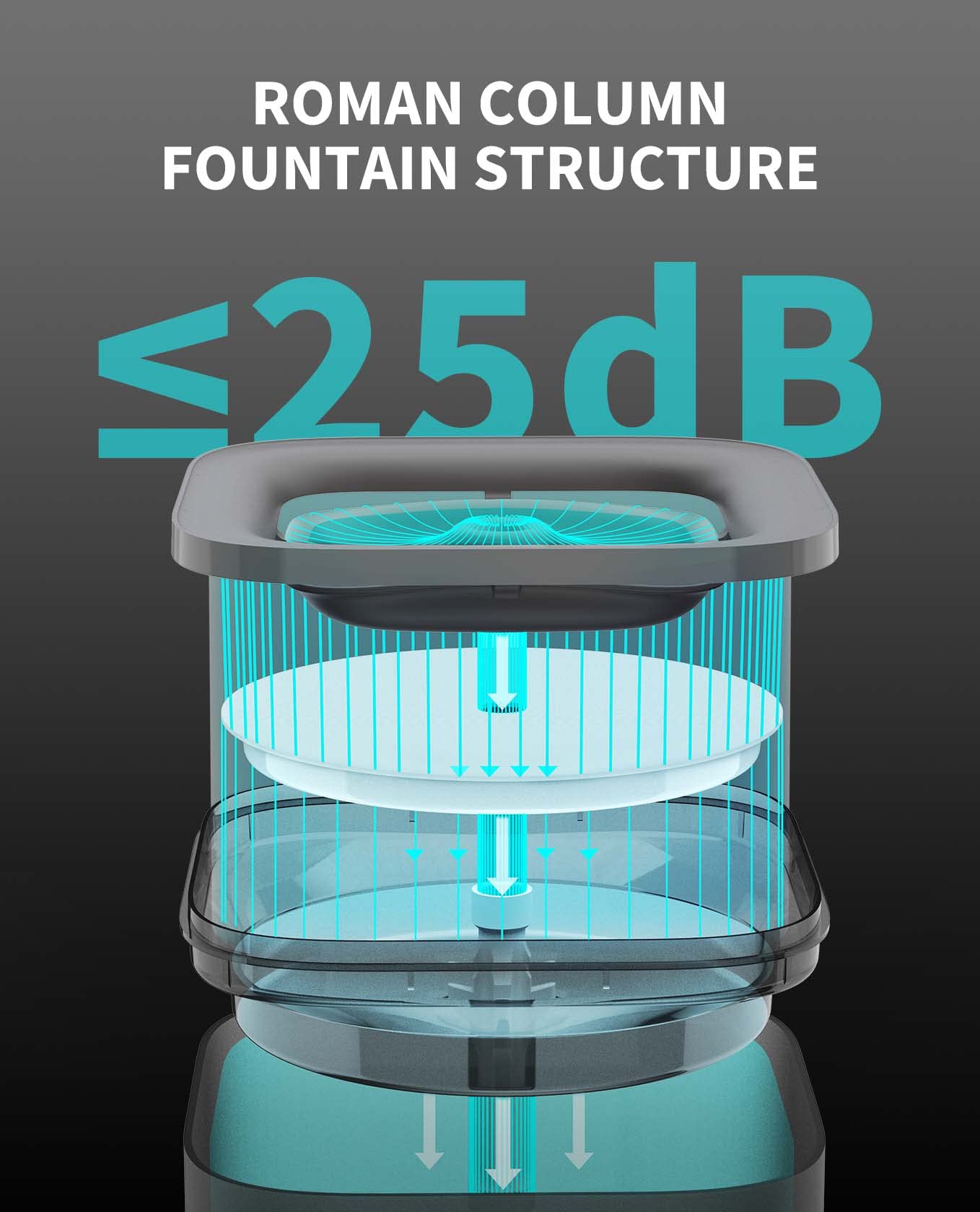 - 3.0 WIRELESS PUMP: This automatic cat water fountain uses upgraded wireless pump 3.0, which is more stable than wired water pump and does not have any wire bundle entanglement, it is more safe. At the same time, a piece of foam filter is placed in water inlet of the pump, which can intercept impurities entering the pump in advance and make the pump have a longer service life. Removable pump structure also makes cleaning easy.